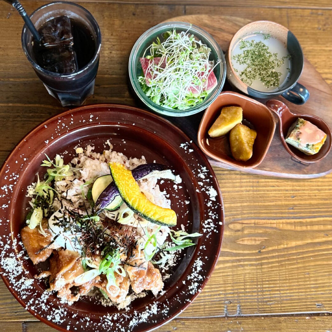 みんな大好き照り焼きチキンに温泉卵を乗せたご飯ランチいかがですか