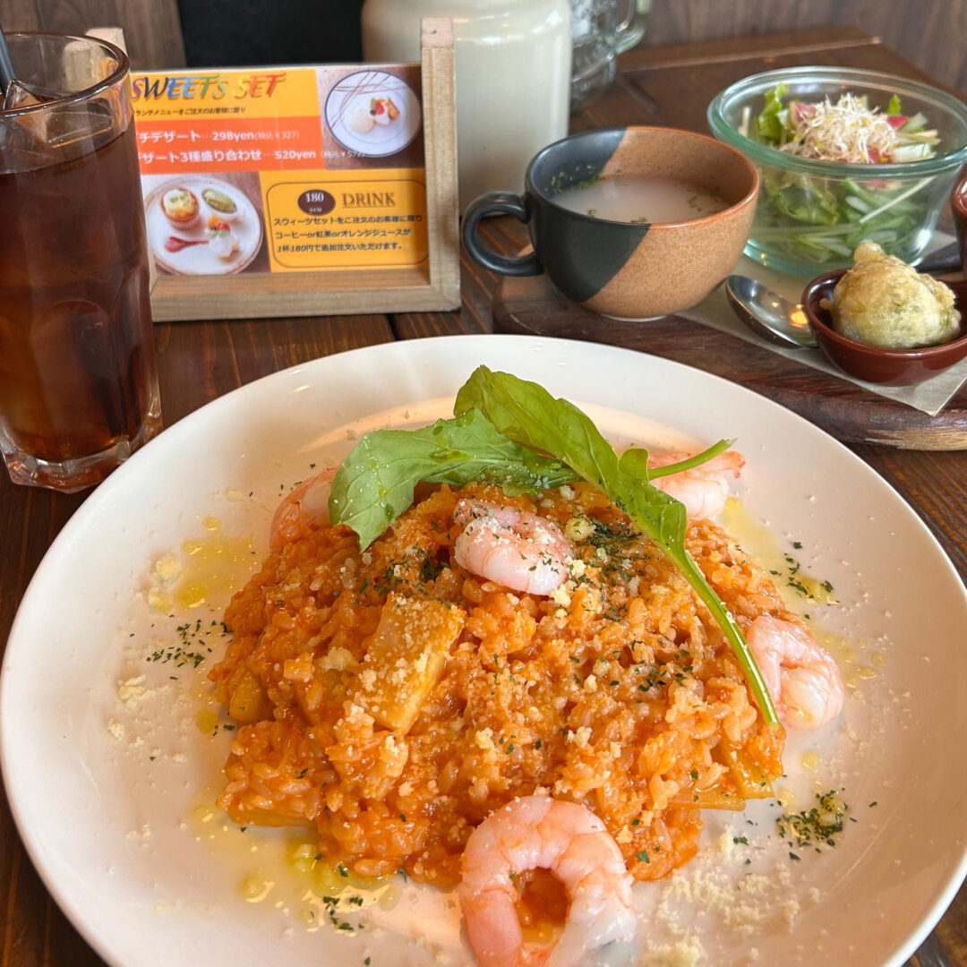 「ぷりぷりエビと青パパイアのトマトクリームリゾット」¥1,780