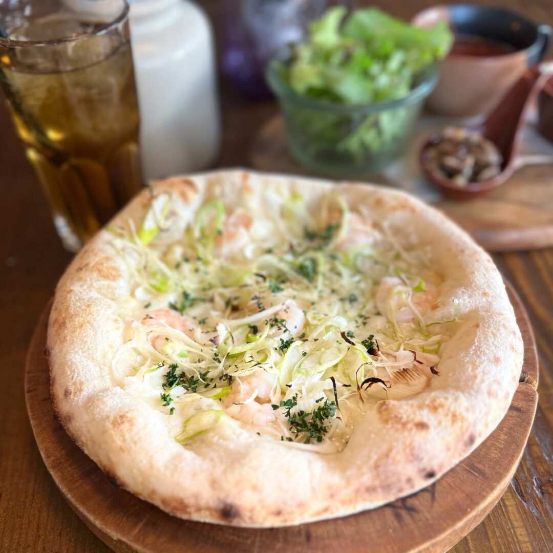 海老の旨みと長ネギの甘み、プレーンpizzaだから素材の味わいが引き立ってとっても美味しいですよ