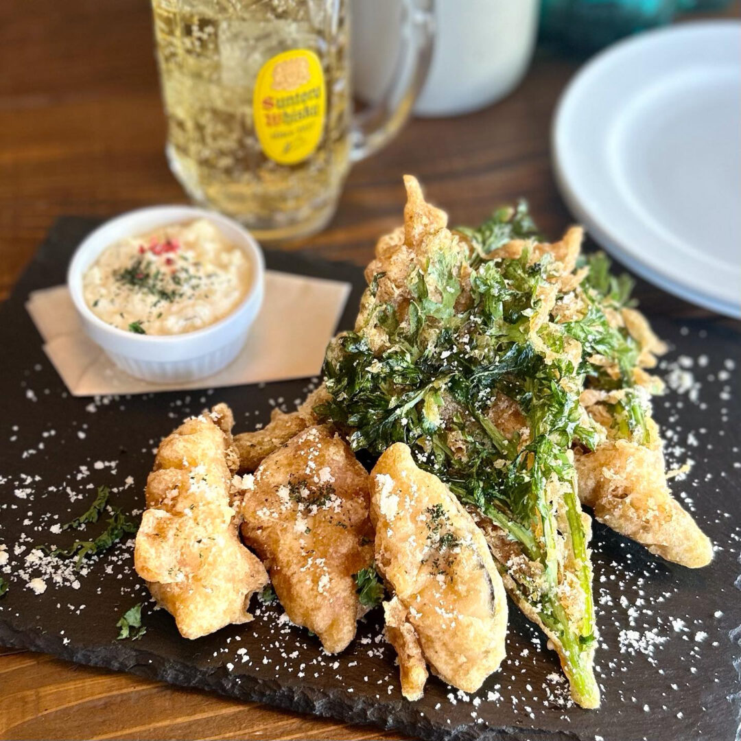 旬のサワラと春菊のをサクフワに揚げました❗️